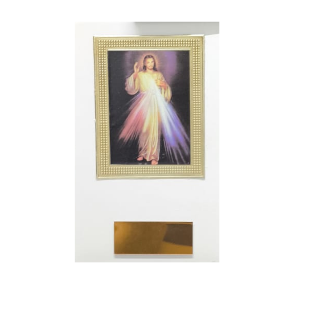 Urna de mármol color blanco con placa de aluminio, imagen o emblema de repujado aluminio