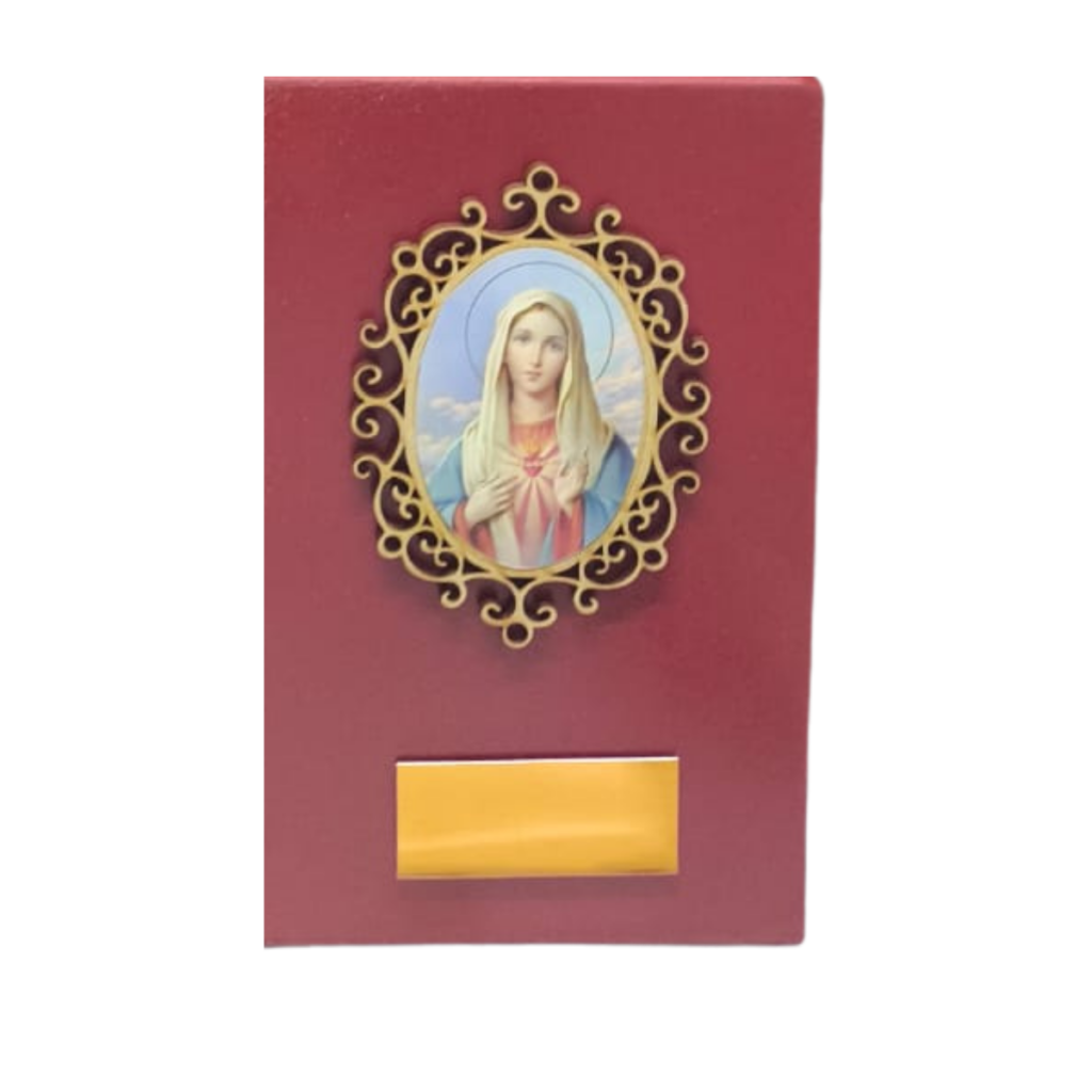 Urna de madera roja con placa de aluminio